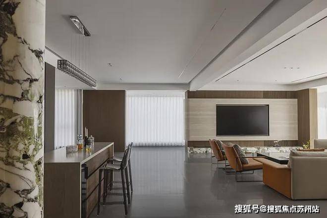 中岛设计既独立又能和其他空间联动起来,变成一个更大的休闲区、社交场,可开可合、可静可动,让空间有了更多的可能性。