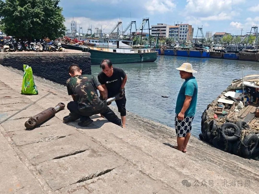 说话间,港口上下船台阶处传来一阵吆喝声,原来是几位渔民在喊着岸边的工人前来帮助,将两件产生毛病的设备抬到岸上修理。